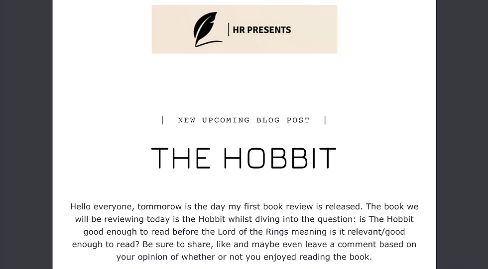 The first book will be The Hobbit. In fact, I will be reviewing the whole Lord of the Rings trilogy. So there you go. Keep a lookout on this forum to find out when the next book will be released. ๐